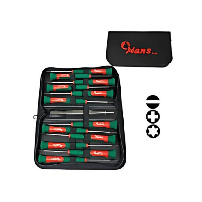 - 06101-13 Bộ dụng cụ chính xác – đầu dẹt, Phillips và sao, kèm nhíp, 13 chi tiết