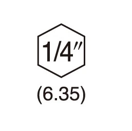 - ดอกไขควงหกเหลี่ยมแบบโยก – ก้านหกเหลี่ยม ⁵⁄₁₆”, ความยาว 80 มม., ขนาด 4 มม. ถึง 12 มม.