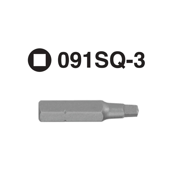 091-3 Square Dr. Hex Shank Screwdriver Bit – 1/4″ Hex Shank – 30mmL – SQ0 to SQ3