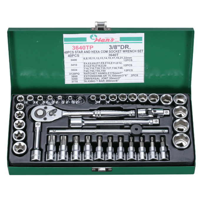 3640TP- Socket Wrench Set- 3/8″ Drive- 40 Pcs