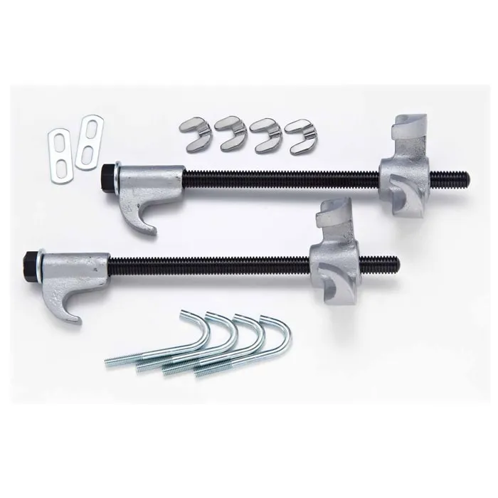| Design | Includes Safety catch hooks and clamp locks | Standard Clamp with Straight threaded rods |