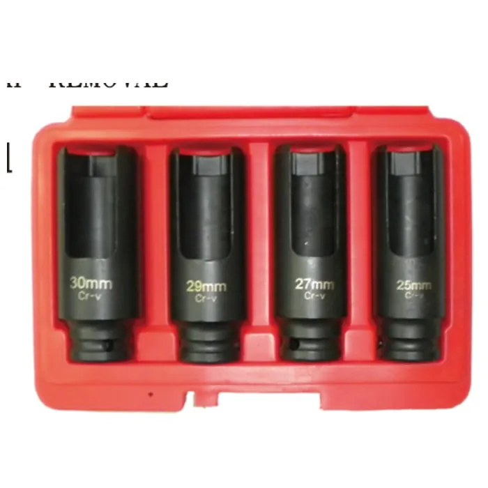 - 4-piece set features ½” drive sockets in four key sizes – 25 mm, 27 mm, 29 mm, and 30 mm – specifically tailored for use with BOSCH, Delphi, Denso, and Siemens injector systems. Made from high-strength Cr-V steel, each socket delivers excellent durability and torque resistance.