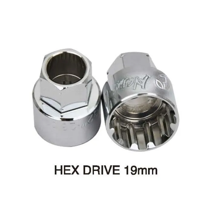 • Socket Adaptor: ⅜” square (female) × 19mm Hex (female)