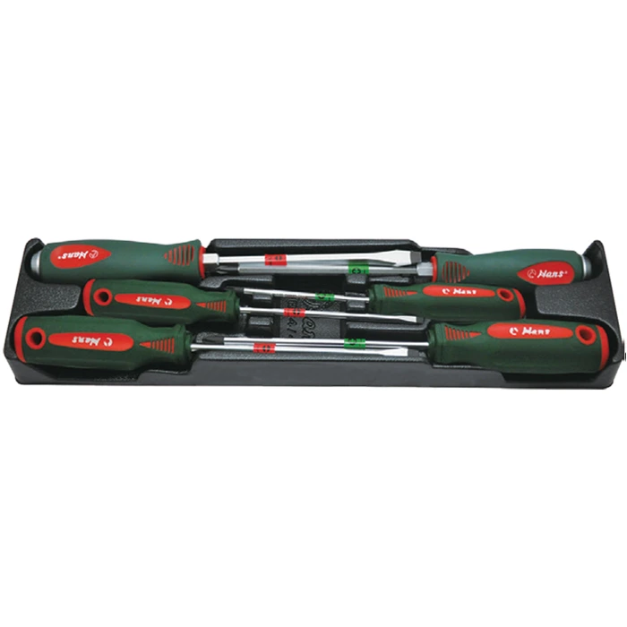 TB-4 – Screwdriver Set with Phillips & Slot Tips, Go-Thru Octagonal PP Ergonomic Handle in Plastic Tray