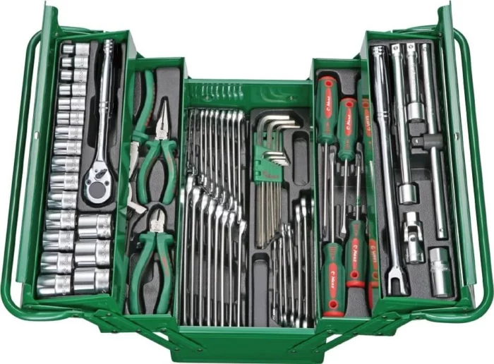 - Includes ratchets, socket sets (10–24 mm & 4–13 mm), driver bits