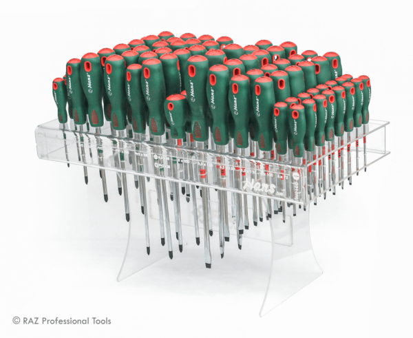 Tags Display Stand, Go-thru type, Hex-Gear, Holey star, Octagonal handle, Phillips, Pozidriv, Screwdriver, Slotted, Star Tip, Triangular handle